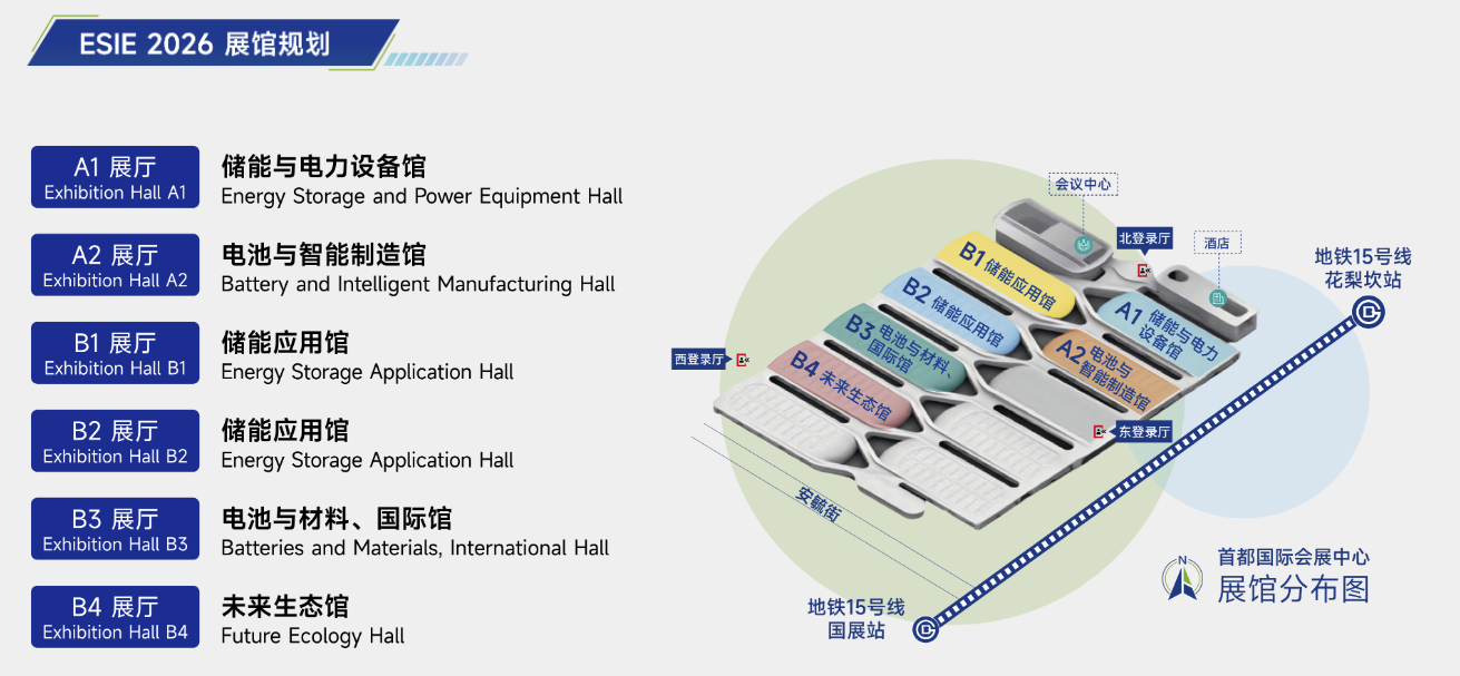 展会将延用北京首都国际会展中心展馆,开设六大主题展馆,以顶配硬件构建储能产业生态展示矩阵,16万平米展览面积与展馆设施的有机融合,为企业提供技术方案与品牌价值的多维展示平台。